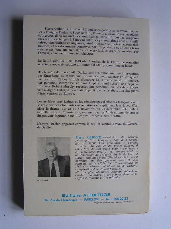 Un des premiers livres objectifs sur l'amiral Darlan, et son rôle en Afrique du Nord, qui apparaît comme un homme d'état pragmatique et lucide, comme le seul et véritable rival du général De Gaulle.