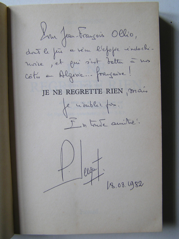 "Les années ont passé...et les lecteurs se pressent toujours aussi nombreux, les jeunes surtout. Et pourtant...si "je ne regrette rien" continue à fasciner des êtres qui arrivent à l'âge adulte, c'est sans doute parce qu'il évoque le contraire de ce que, trop souvent, ils rencontrent ou de ce qu'on leur raconte quotidiennement. Puisse ce souvenir, et cet exemple aussi, habiter longtemps encore la mémoire du jeune lecteur - et du moins jeune - lorsqu'il aura tourné la dernière page de "Je ne regrette rien"." (Hélie Denoix de Saint-Marc. Préface de la deuxième édition)