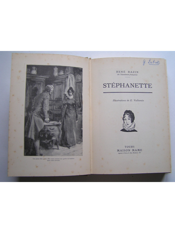 Edition de 1934 du premier roman de René Bazin (la première est de 1884) établie dans un très beau cartonnage éditeur en percaline vert pâle et décor polychrome, tranche de tête dorée.