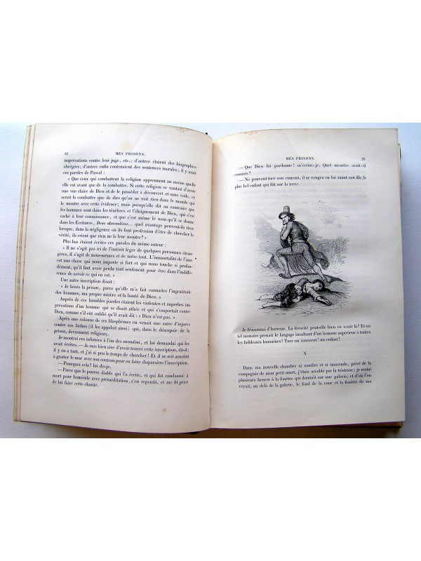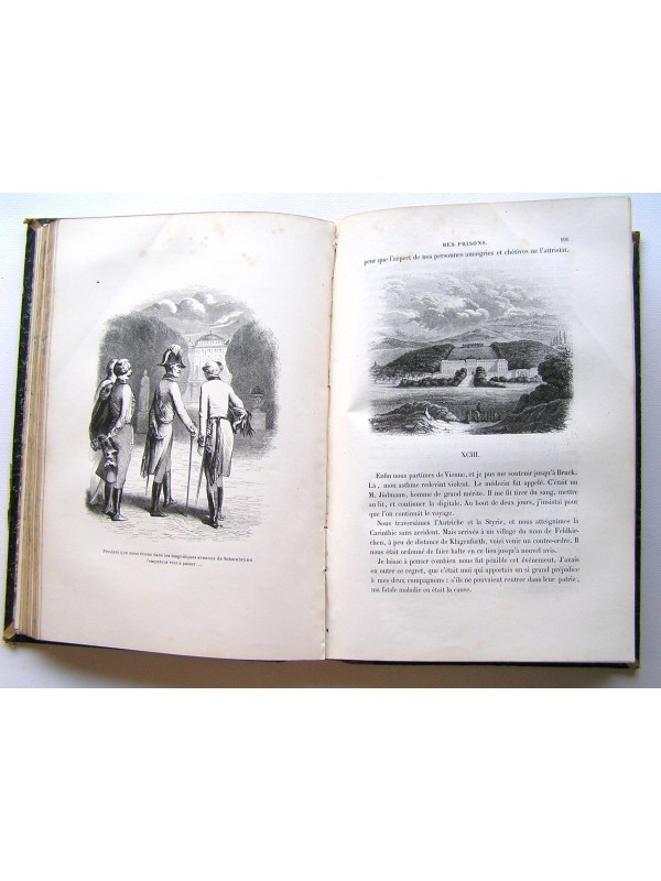 Edition (la 7 ou 8ème) de 1843 traduit par M. Antoine de Latour et illustrée de cent beaux dessins de Tony Johannot avec des chapitres inédits, les additions de Maroncelli et des notices littéraires ou biographiques sur plusieurs prisonniers du Spielberg.
