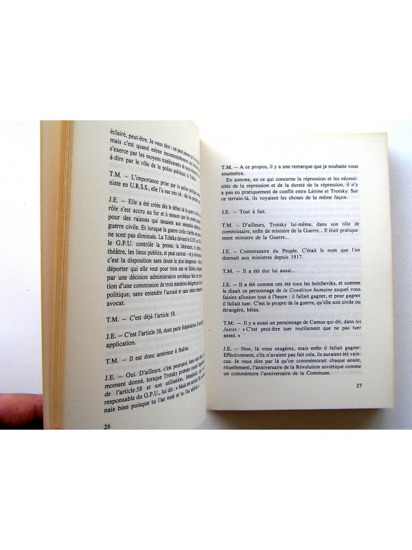 Fait sans précédent dans la confrontation des idées en France, deux écrivains classés parmi les extrêmes opposés se sont rencontrés pour s'interroger ensemble sans intention polémique sur les grands problèmes du temps présent - nous sommes dans les années 70, mais les grandes questions demeurent - et publient dans un ouvrage commun le texte enregistré de ces conversations.